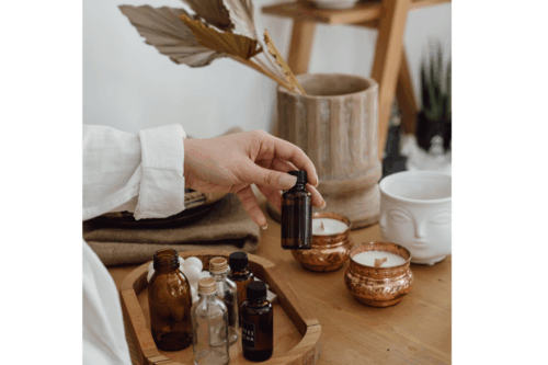 ひじや上腕に体重を乗せて行うオイルトリートメントでは